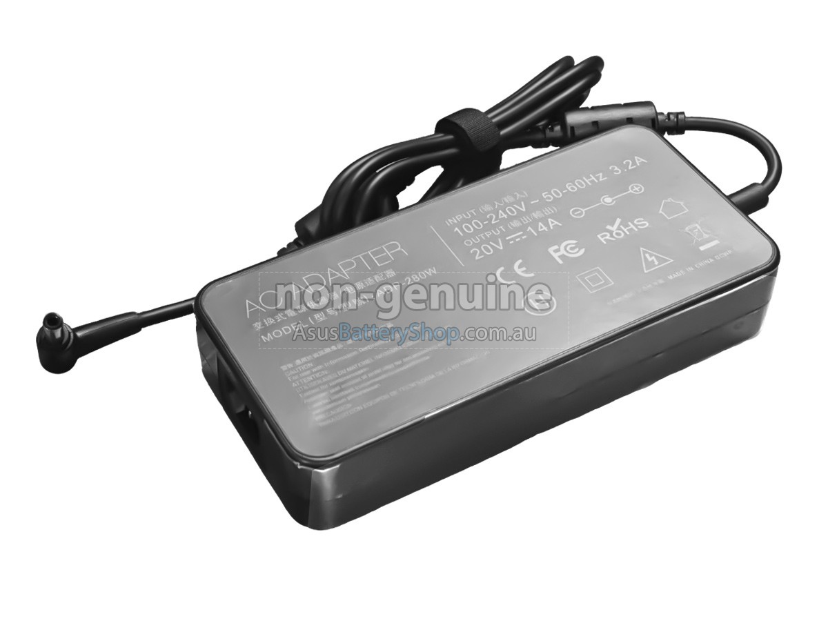 The adapter for Asus 20V 14A 280W 100-240V~3.2A 50/60HZ sold by AsusBatteryShop is non-genuine replacement. We mention the brand and model of the original manufacturer only to show the compatibility of our replacement adapter so that customers can correctly purchase the replacements they need.