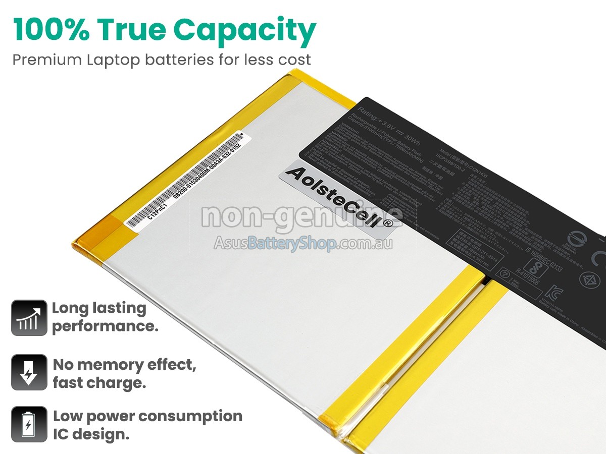 The battery for Asus 0B200-01530400 sold by AsusBatteryShop is non-genuine replacement. We mention the brand and model of the original manufacturer only to show the compatibility of our replacement battery so that customers can correctly purchase the replacements they need.