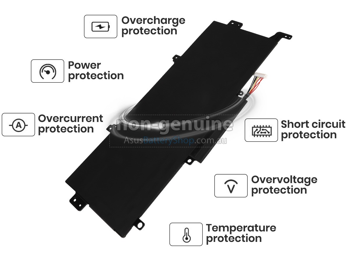 The battery for Asus 0B200-02090300 sold by AsusBatteryShop is non-genuine replacement. We mention the brand and model of the original manufacturer only to show the compatibility of our replacement battery so that customers can correctly purchase the replacements they need.
