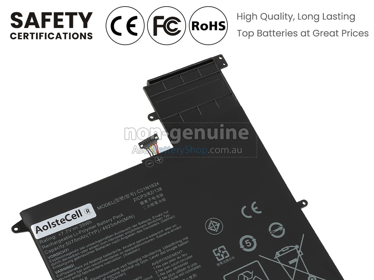 The battery for Asus 0B200-02420200 sold by AsusBatteryShop is non-genuine replacement. We mention the brand and model of the original manufacturer only to show the compatibility of our replacement battery so that customers can correctly purchase the replacements they need.