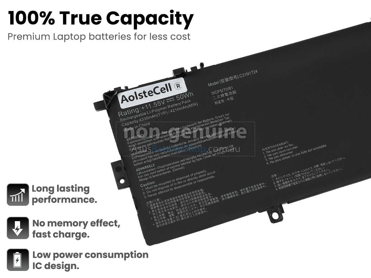 We've accurately manufactured the Asus 0B200-02760400 laptop battery according to the specification of the original battery and conducted a comprehensive test of its multiple performances so that it can be perfectly installed into your Asus laptop and fully compatible with the electronics and software equipped.