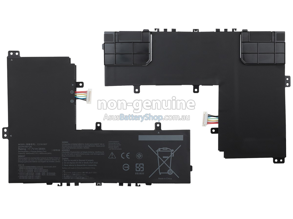 The battery for Asus C21N1807 sold by AsusBatteryShop is non-genuine replacement. We mention the brand and model of the original manufacturer only to show the compatibility of our replacement battery so that customers can correctly purchase the replacements they need.