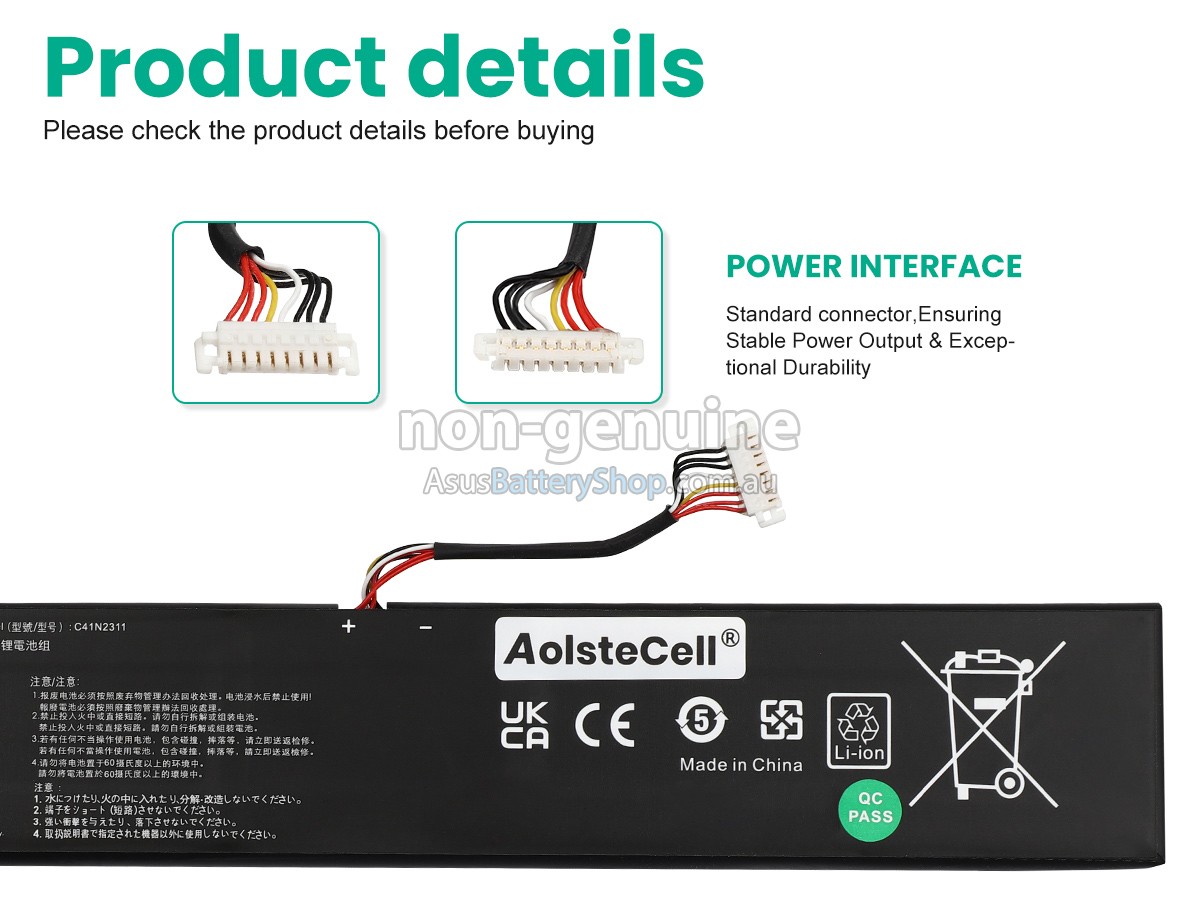 The battery for Asus C41N2311 sold by AsusBatteryShop is non-genuine replacement. We mention the brand and model of the original manufacturer only to show the compatibility of our replacement battery so that customers can correctly purchase the replacements they need.