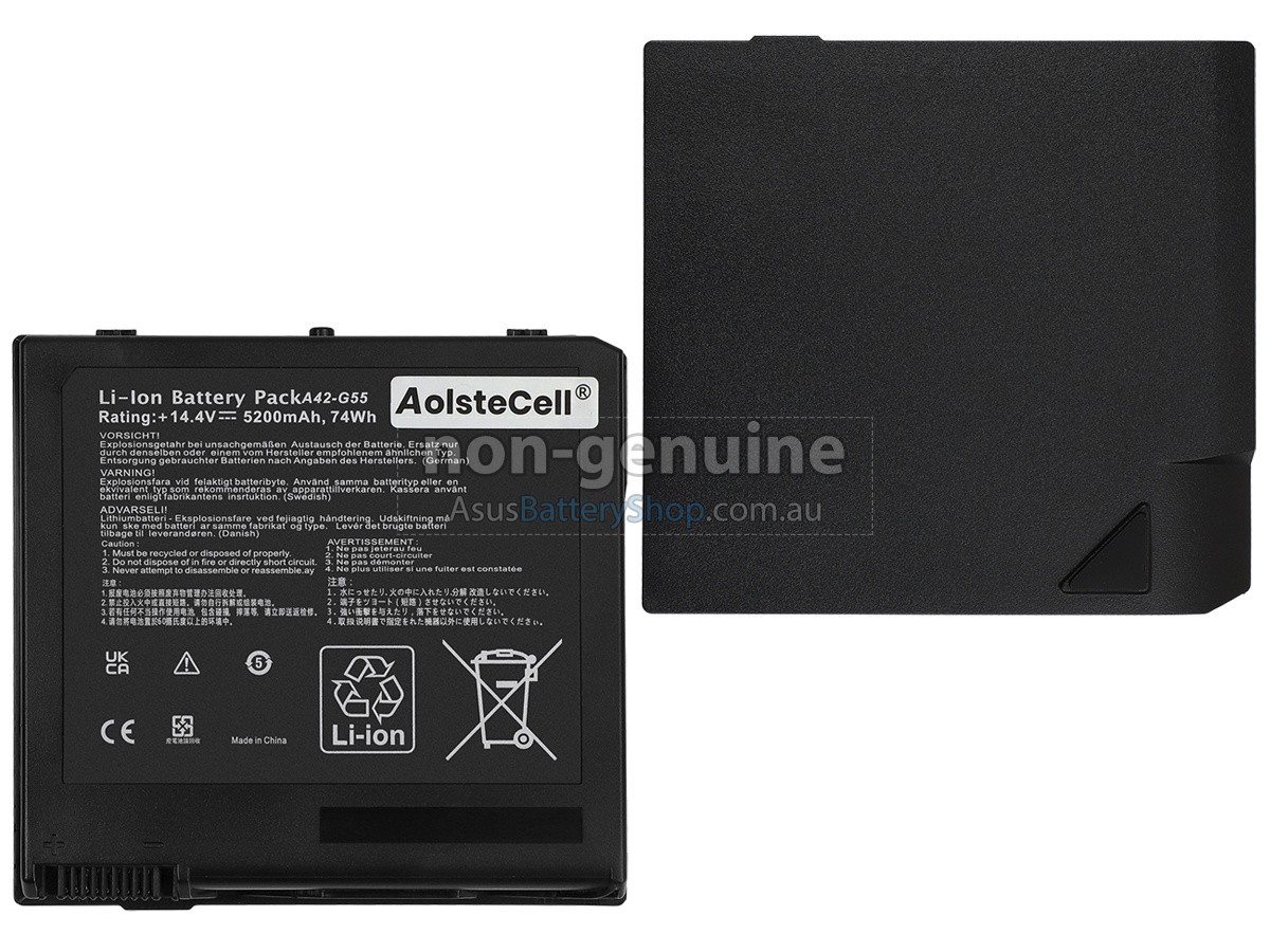 The battery for Asus G55VM sold by AsusBatteryShop is non-genuine replacement. We mention the brand and model of the original manufacturer only to show the compatibility of our replacement battery so that customers can correctly purchase the replacements they need.