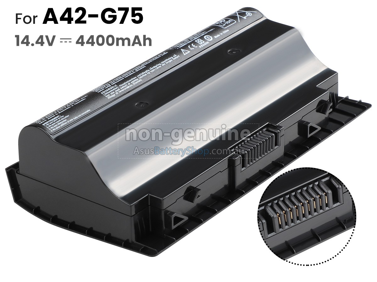 The battery for Asus G75VW sold by AsusBatteryShop is non-genuine replacement. We mention the brand and model of the original manufacturer only to show the compatibility of our replacement battery so that customers can correctly purchase the replacements they need.