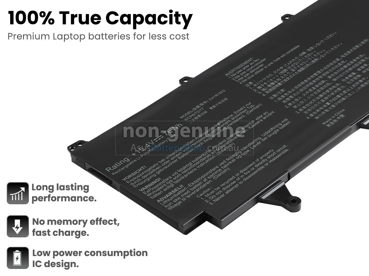 The battery for Asus Rog ZEPHYRUS S GX701GXR sold by AsusBatteryShop is non-genuine replacement. We mention the brand and model of the original manufacturer only to show the compatibility of our replacement battery so that customers can correctly purchase the replacements they need.