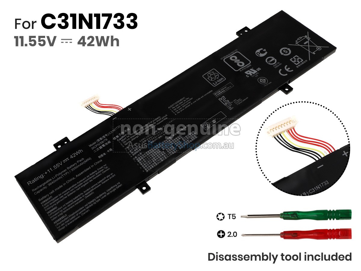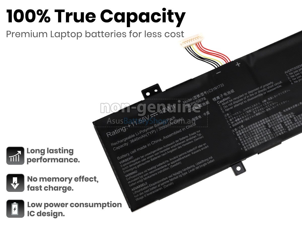 The battery for Asus VivoBook Flip TP412FA-EC499T sold by AsusBatteryShop is non-genuine replacement. We mention the brand and model of the original manufacturer only to show the compatibility of our replacement battery so that customers can correctly purchase the replacements they need.